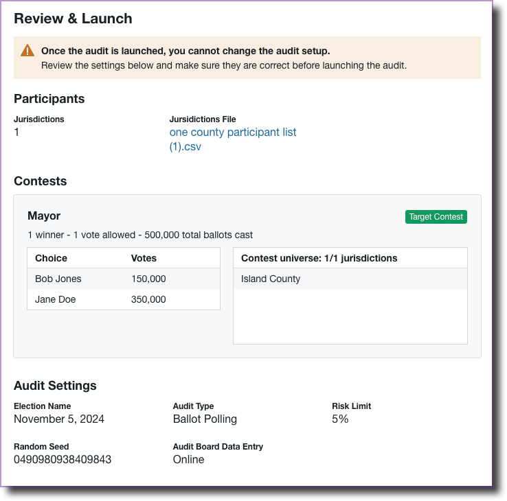 After all setup screens are completed and all jurisdictions have uploaded their files, it is time to launch the audit.