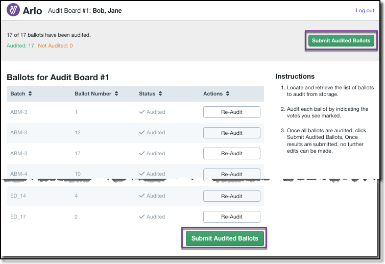 3\.  Once all ballots have been audited, select Submit Audited Ballots.