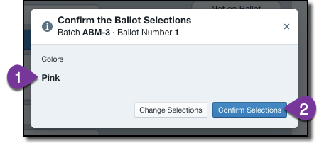 2\.  On the verification screen, review the ballot information for accuracy and select Confirm Selections to go to the next ballot.
