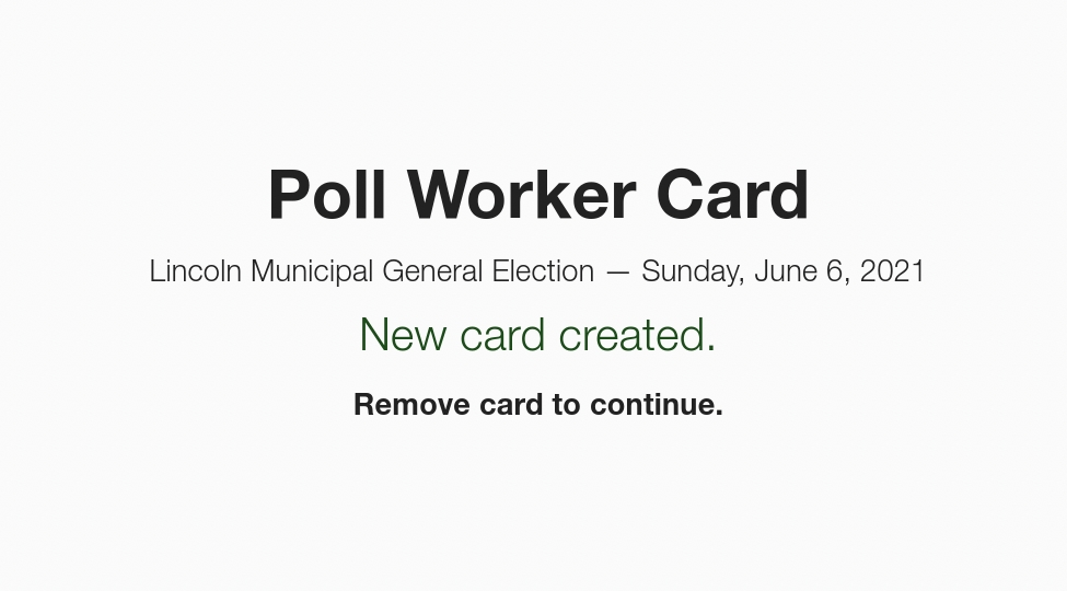 Every precinct will need at least one Poll Worker Card in order to operate the polls.