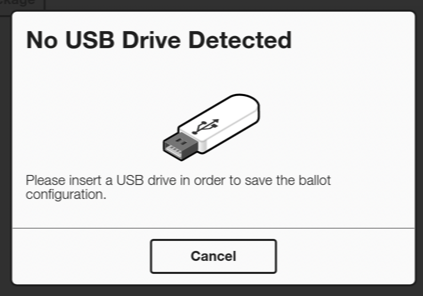 You will be prompted to insert a USB drive. Once you insert a USB drive, the screen updates and prompts you to save the election package. Select Save.