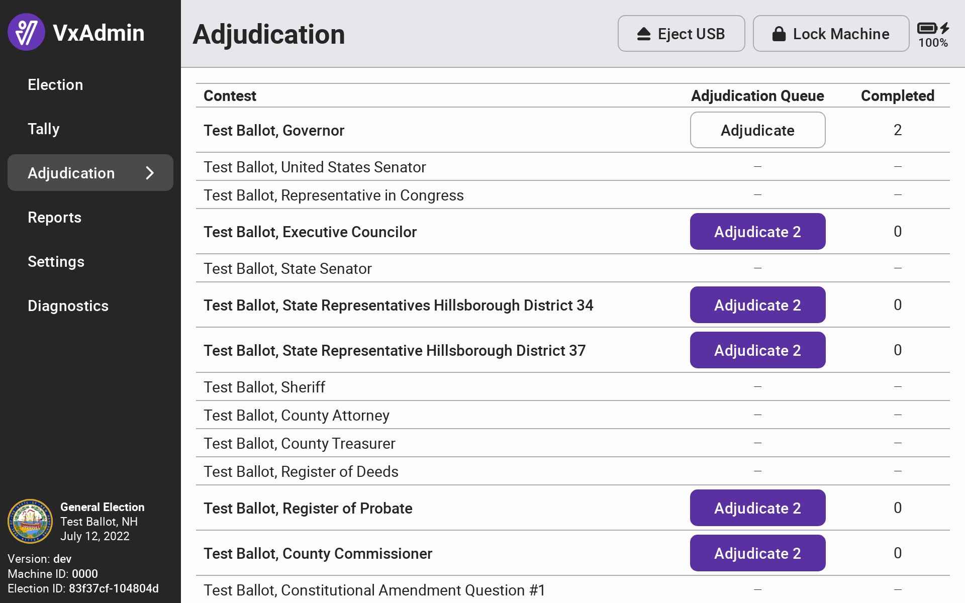 <div><figure><img src="https://2752676040-files.gitbook.io/~/files/v0/b/gitbook-x-prod.appspot.com/o/spaces%2FJtZutzGTdCzsGITrdiph%2Fuploads%2Fgit-blob-f34fc4ac741fa7b9462e59a2e1c1599c65af57ff%2Fvxadmin-adjudication-1-contest-done-queue.png?alt=media" alt=""><figcaption></figcaption></figure> <figure><img src="https://2752676040-files.gitbook.io/~/files/v0/b/gitbook-x-prod.appspot.com/o/spaces%2FJtZutzGTdCzsGITrdiph%2Fuploads%2Fgit-blob-b759bf1319076780f2ca3f972d53870044ee3230%2Fvxadmin-adjudication-complete.png?alt=media" alt=""><figcaption></figcaption></figure></div>