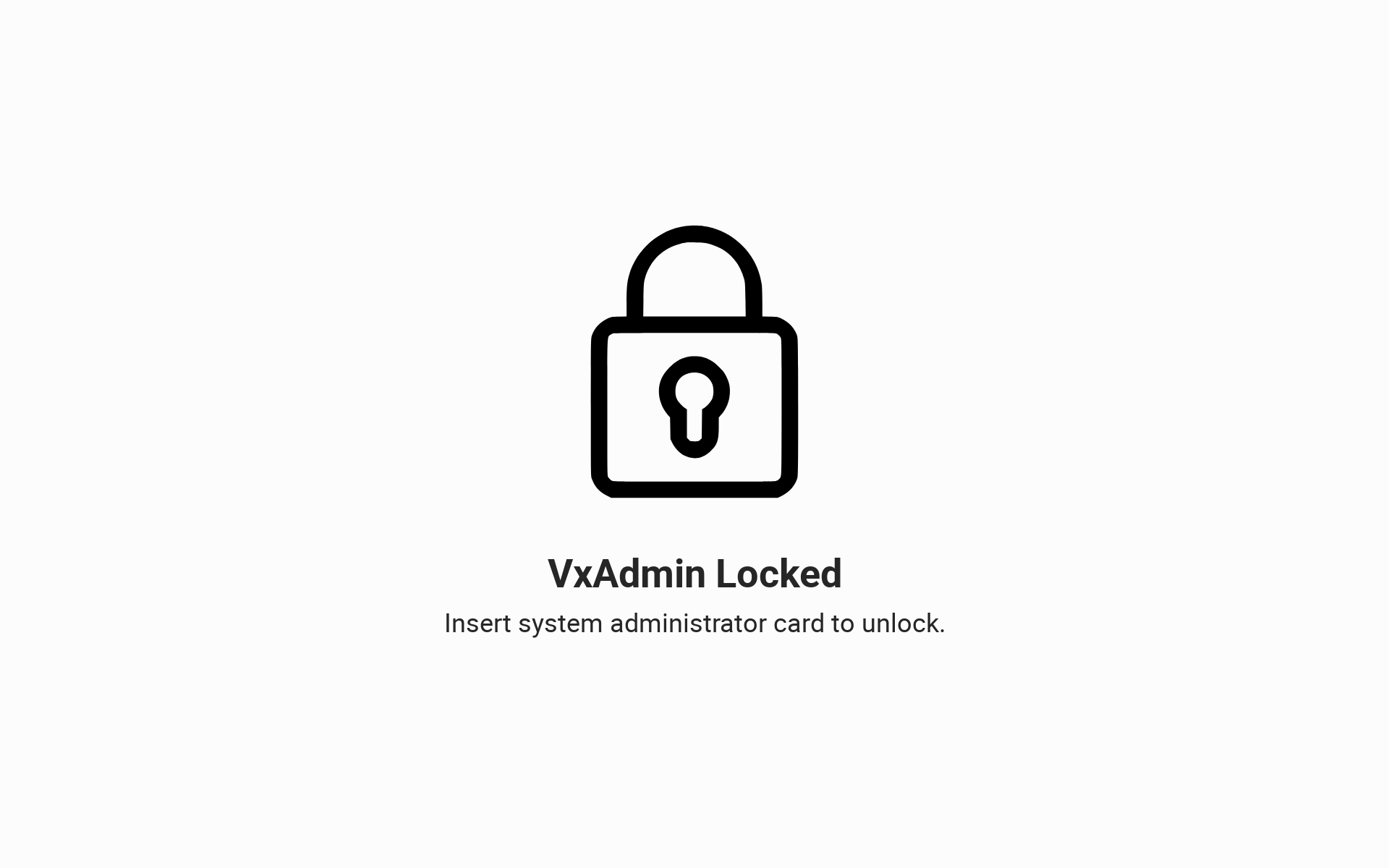 Both machines will be locked after starting up. To unlock the machine, insert your election manager or system administrator card into the smart card reader. Enter the PIN and remove your card.