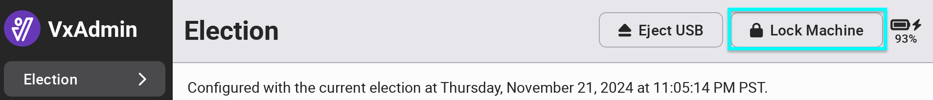 Lock the machine by selecting *`Lock Machine`* in the upper right hand corner of the screen. Each machine should be locked when not in use.