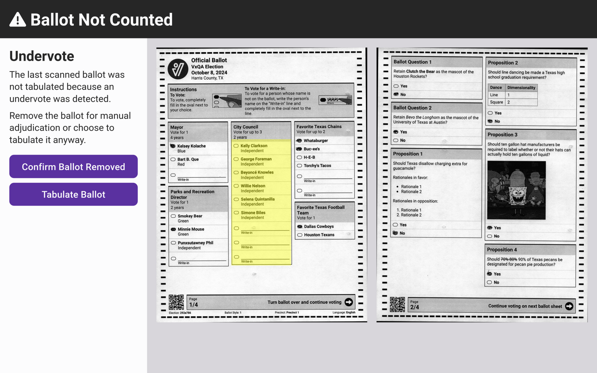 <div><figure><img src="https://2752676040-files.gitbook.io/~/files/v0/b/gitbook-x-prod.appspot.com/o/spaces%2FJtZutzGTdCzsGITrdiph%2Fuploads%2Fgit-blob-11158dde39661f8ed042738dd0a9d44992676b5b%2Fovervoted-ballot-cs.png?alt=media" alt=""><figcaption></figcaption></figure> <figure><img src="https://2752676040-files.gitbook.io/~/files/v0/b/gitbook-x-prod.appspot.com/o/spaces%2FJtZutzGTdCzsGITrdiph%2Fuploads%2Fgit-blob-cd52b161fc8e0c6a80eb6632949209f787cd9190%2Fcs-blank-ballot.png?alt=media" alt=""><figcaption></figcaption></figure> <figure><img src="https://2752676040-files.gitbook.io/~/files/v0/b/gitbook-x-prod.appspot.com/o/spaces%2FJtZutzGTdCzsGITrdiph%2Fuploads%2Fgit-blob-6f3faf0c9e1714d04f939be0ca9cc95deab4cb66%2Fcs-undervoted-ballot.png?alt=media" alt=""><figcaption></figcaption></figure></div>