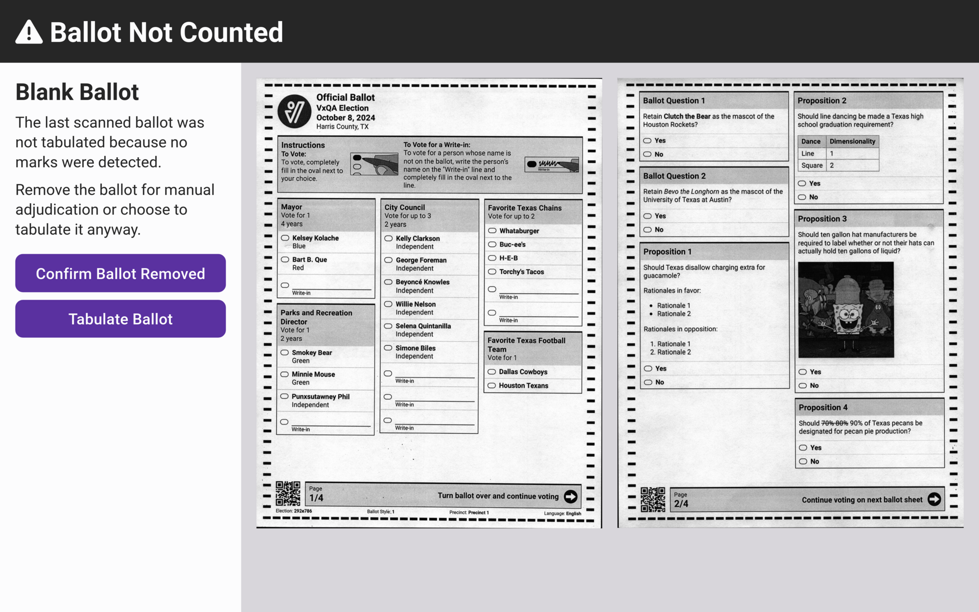 <div><figure><img src="https://2752676040-files.gitbook.io/~/files/v0/b/gitbook-x-prod.appspot.com/o/spaces%2FJtZutzGTdCzsGITrdiph%2Fuploads%2Fgit-blob-a86905c42d6e13a26a8252329e90897c6ac10e0d%2Fno-ballots-scanned%20copy%202.png?alt=media" alt="" width="375"><figcaption></figcaption></figure> <figure><img src="https://2752676040-files.gitbook.io/~/files/v0/b/gitbook-x-prod.appspot.com/o/spaces%2FJtZutzGTdCzsGITrdiph%2Fuploads%2Fgit-blob-6262bb6e0c544e84de9784266da490aee42aa640%2Fcs-ballots-scanned.png?alt=media" alt="" width="375"><figcaption></figcaption></figure></div>