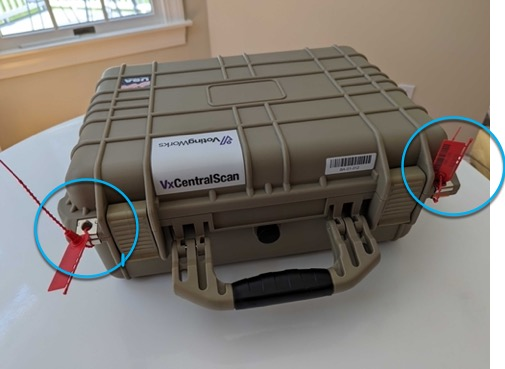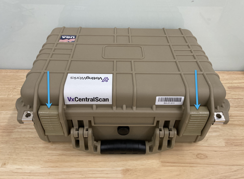 To pack up the VxCentralScan, simply place all of the components back into the case as displayed above and package the batch document scanner. Secure the laptop case as required by sealing the eyelets highlighted below.
