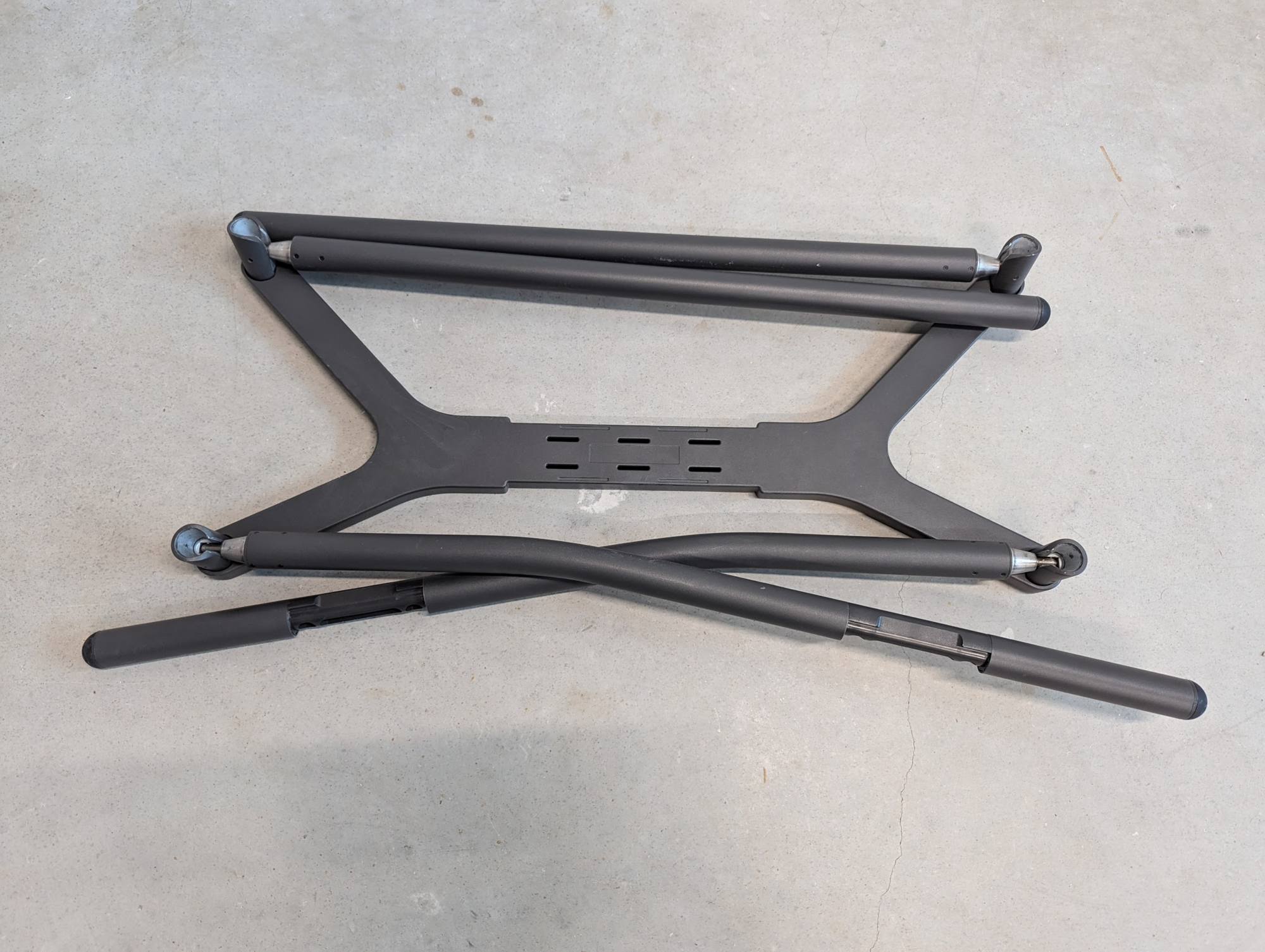 * [ ] With the legs facing up, pull a leg toward you and fold in