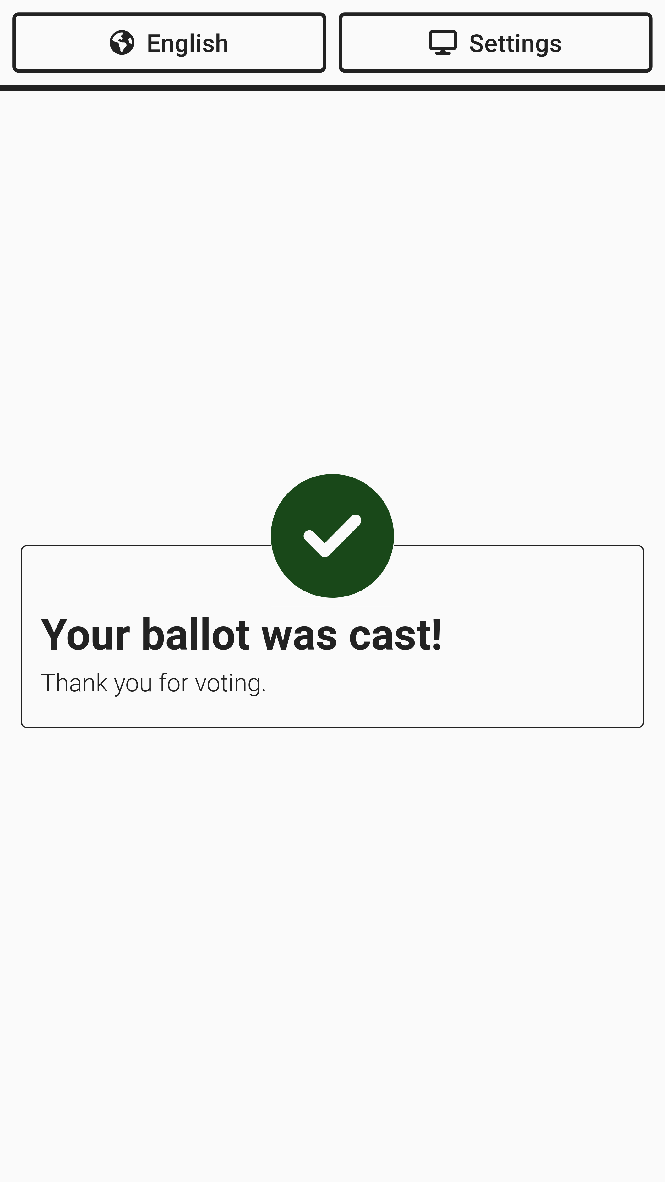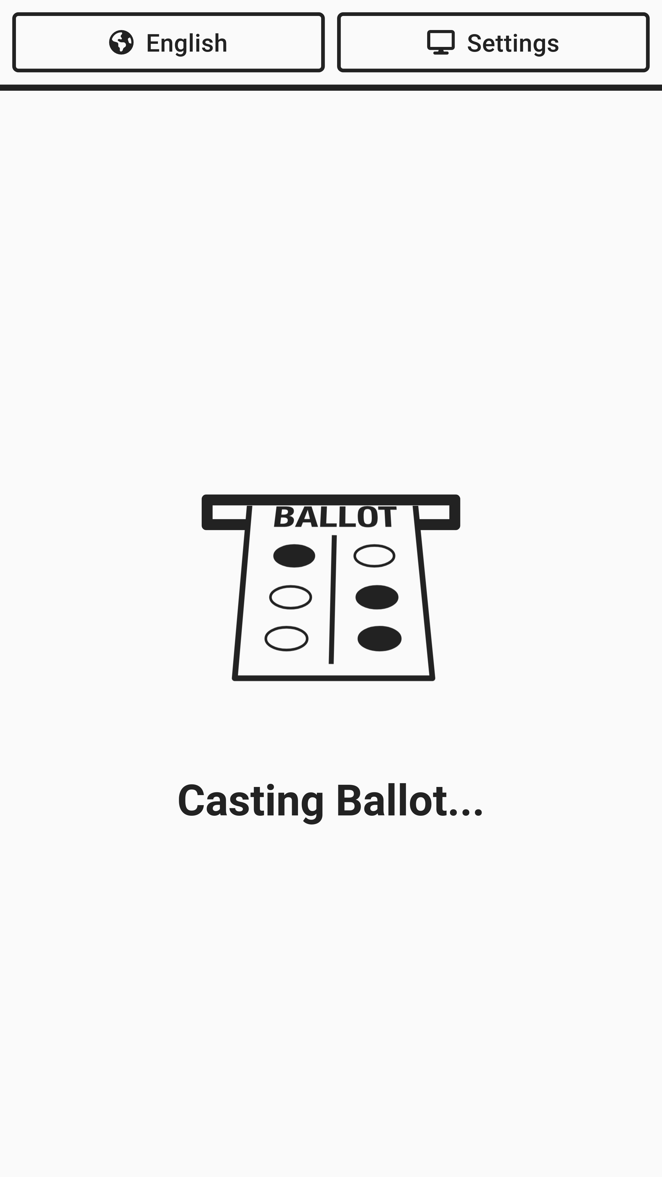 The screen will show the ballot being cast and verify it was cast and dropped into the ballot bin.