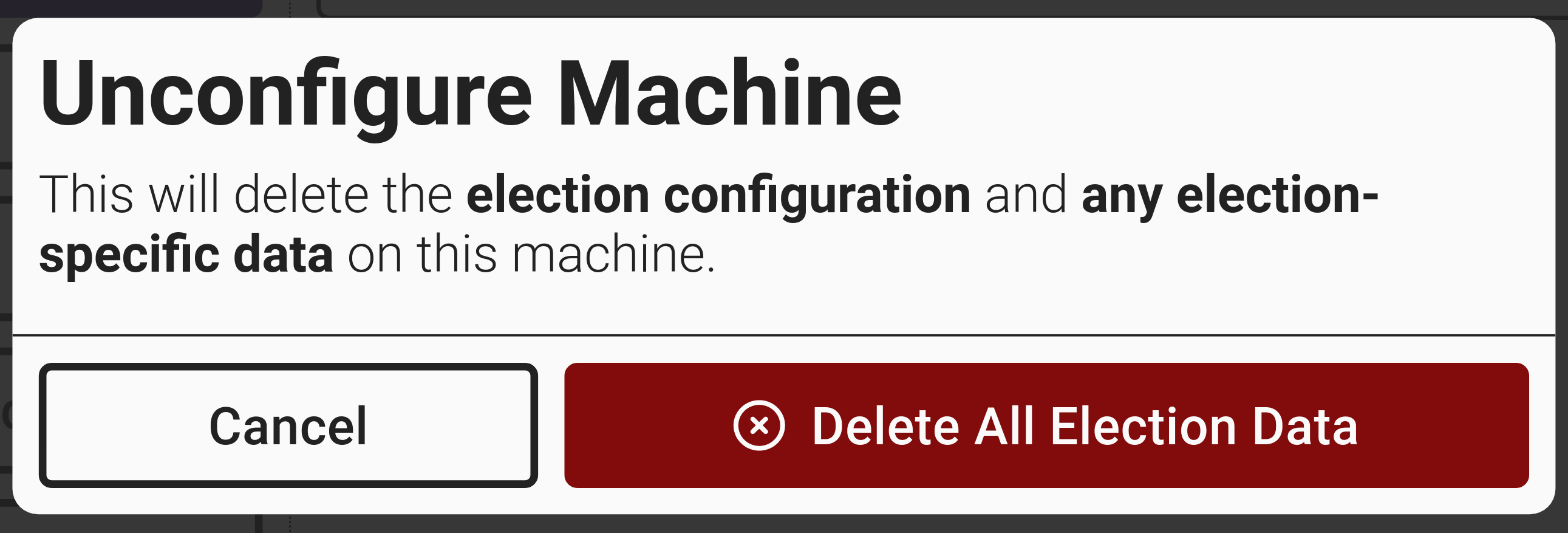 * [ ] Confirm by selecting *`Delete All Election Data.`*